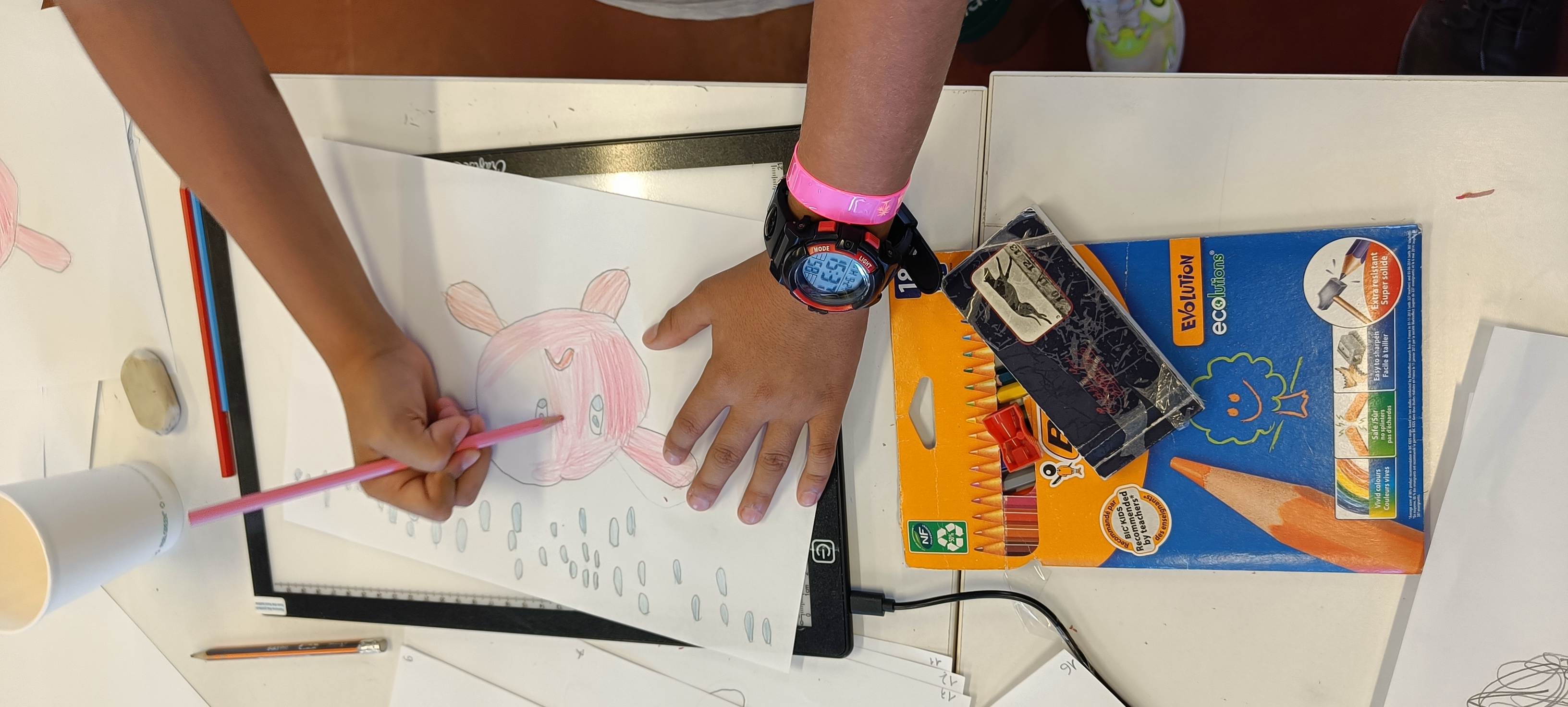 Les enfants ont laissé libre cours à leur imagination en créant leur propre animation à l’aide de tablettes lumineuses.
